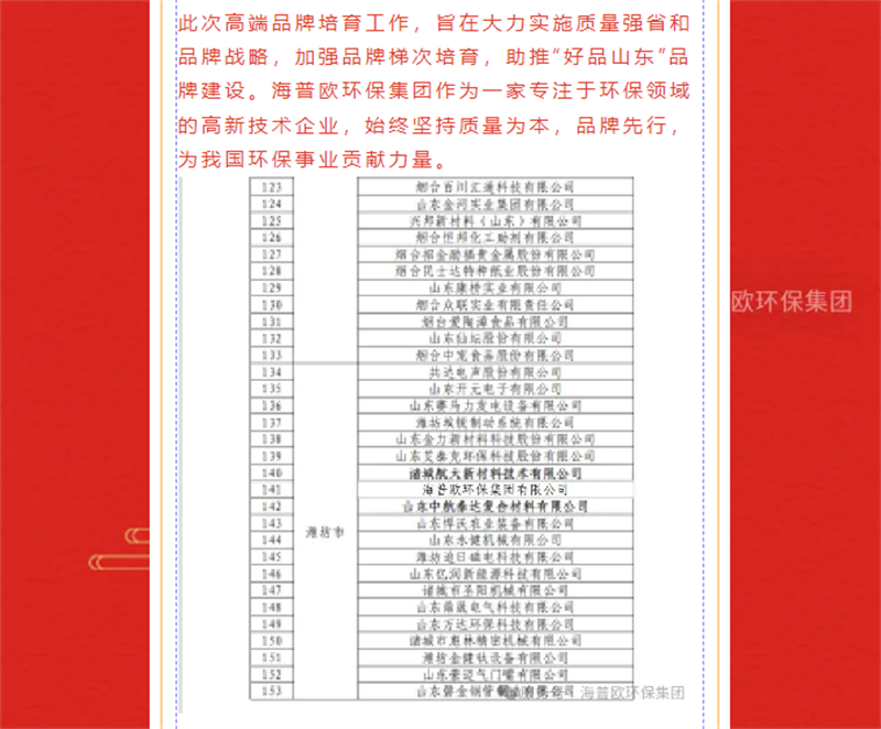 | 山東省知名品牌 | 省級 | 工信廳 |
