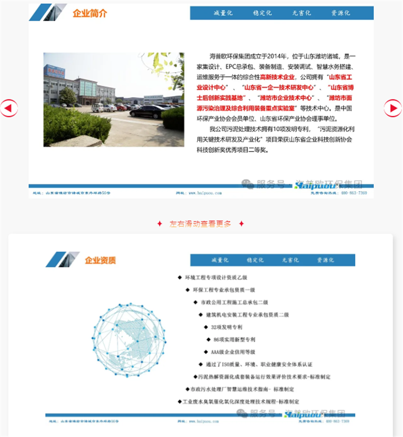 海普歐環(huán)保集團是國家高新技術(shù)企業(yè)、國家級專精特新“小巨人”企業(yè)、工信部環(huán)保裝備制造行業(yè)規(guī)范條件企業(yè)、山東省專精特新企業(yè)、山東省制造業(yè)單項冠軍企業(yè)、山東省“瞪羚企業(yè)”、山東省兩化融合優(yōu)秀企業(yè)、山東省技術(shù)創(chuàng)新示范單位、山東省環(huán)境保護產(chǎn)業(yè)“骨干企業(yè)”、山東省DCMM貫標試點單位、服務(wù)型制造示范企業(yè)、“隱形冠軍”企業(yè),擁有山東省工業(yè)設(shè)計中心、山東省一企一技術(shù)研發(fā)中心、山東省博士后創(chuàng)新實踐基地、濰坊市企業(yè)技術(shù)中心、濰坊市面源污染治理及綜合利用裝備重點實驗室。公司擁有環(huán)境工程專項設(shè)計乙級資質(zhì),環(huán)保工程專業(yè)承包資質(zhì)一級、市政公用工程施工總承包二級、建筑機電安裝工程專業(yè)承包二級資質(zhì)、施工勞務(wù)不分等級資質(zhì)、安全生產(chǎn)許可證;同時取得了水污染治理設(shè)施運維能力評價二級;中華環(huán)保產(chǎn)業(yè)聯(lián)合會理事單位、山東省環(huán)保產(chǎn)業(yè)協(xié)會理事單位、濰坊市建筑專業(yè)承包企業(yè)信用評價等級AAA企業(yè)、天津大學(xué)環(huán)境學(xué)院生態(tài)環(huán)境校友會(第二屆)理事會執(zhí)行會長單位、寧夏山東企業(yè)商會執(zhí)行會長單位、諸城市環(huán)保產(chǎn)業(yè)聯(lián)盟理事單位;并通過了ISO9001質(zhì)量體系認證、ISO14001環(huán)境管理體系認證、ISO45001職業(yè)健康安全管理體系認證;擁有發(fā)明型專利33項,實用性專利88項、計算機軟件著作權(quán)14項;注冊了“haipuou”品牌商標;公司榮獲“濰坊市科學(xué)技術(shù)獎”“山東省工信廳認定數(shù)字經(jīng)濟晨星工廠”、“守合同重信用企業(yè)”、“AAA信用企業(yè)”、“中國優(yōu)秀環(huán)保企業(yè)”、“ 山東省環(huán)境保護產(chǎn)業(yè)環(huán)境技術(shù)進步獎”、“山東省企業(yè)技術(shù)創(chuàng)新促進會技術(shù)創(chuàng)新獎”等多項榮譽;我公司專利產(chǎn)品-基于5G應(yīng)用的云控制和云檢測數(shù)字化污水處理設(shè)備被認定為“山東省知名品牌(產(chǎn)品)”、“山東制造·齊魯精品”榮譽。