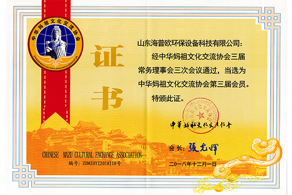 熱烈祝賀山東海普歐環(huán)保設(shè)備科技有限公司當(dāng)選中華媽祖協(xié)會會員單位