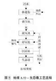 一種常規(guī)生化處理后增加生態(tài)塘處理工藝。生態(tài)塘亦稱氧化塘或穩(wěn)定塘,是一種利用天然凈化能力對(duì)污水進(jìn)行處理的構(gòu)筑物的總稱。其凈化過(guò)程與自然水體的自凈過(guò)程相似,通常是將土地進(jìn)行適當(dāng)?shù)娜斯ば拚ǔ沙靥,并設(shè)置圍堤和防滲層,依靠塘內(nèi)生長(zhǎng)的微生物來(lái)處理污水。