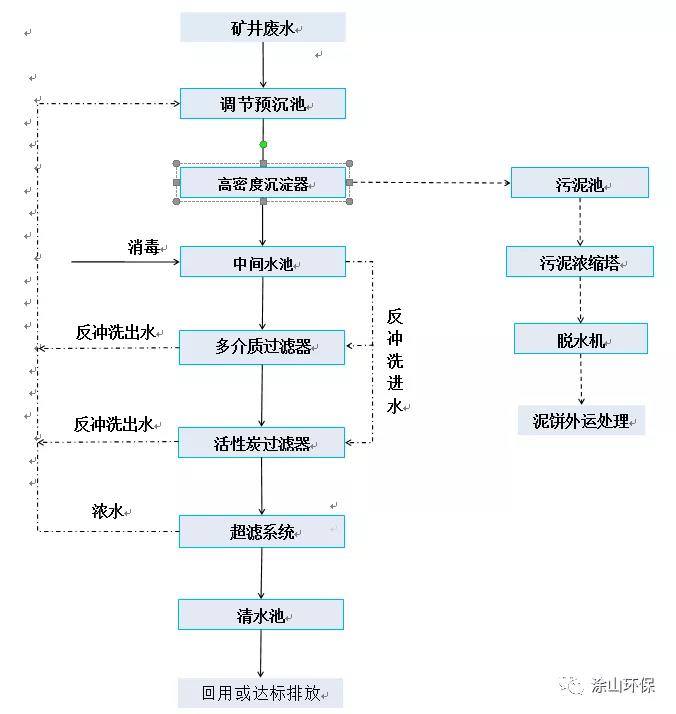 至礦井廢水調節(jié)預沉池重新處理 |