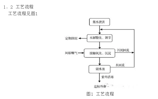 處理站由集水泄洪池、水解酸化調(diào)節(jié)池、接觸氧化、污泥沉淀池和蓄水池組成,總有效容積為160m3,其中水解酸化調(diào)節(jié)池(115m3)與接觸氧化區(qū)(21m3)的容積比為5.5:1左右,水解酸化調(diào)節(jié)池設(shè)有污泥排放口。