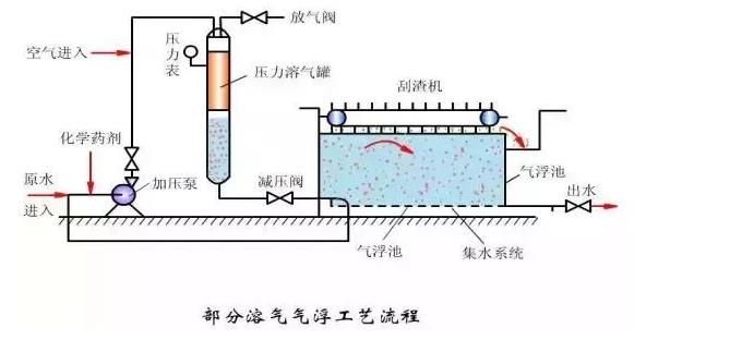 氣浮法:在污水中通入空氣,產(chǎn)生微小氣泡作為載體,使污水中的乳化油、微小懸浮物等污染物黏附在氣泡上。利用氣泡的浮升作用上浮到水面,通過(guò)收集水面上的泡沫或浮渣達(dá)到分離雜質(zhì)、凈化污水的目的。